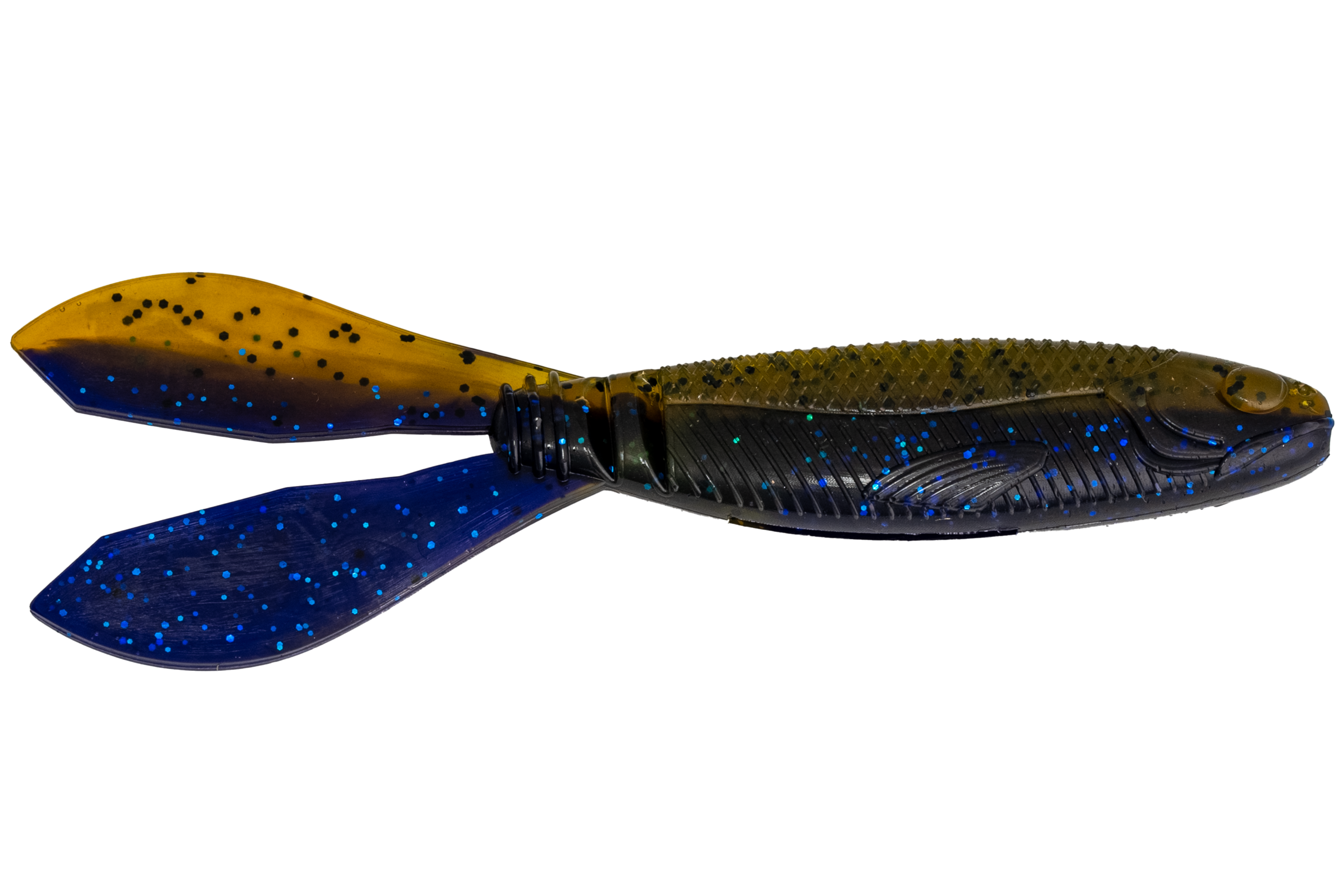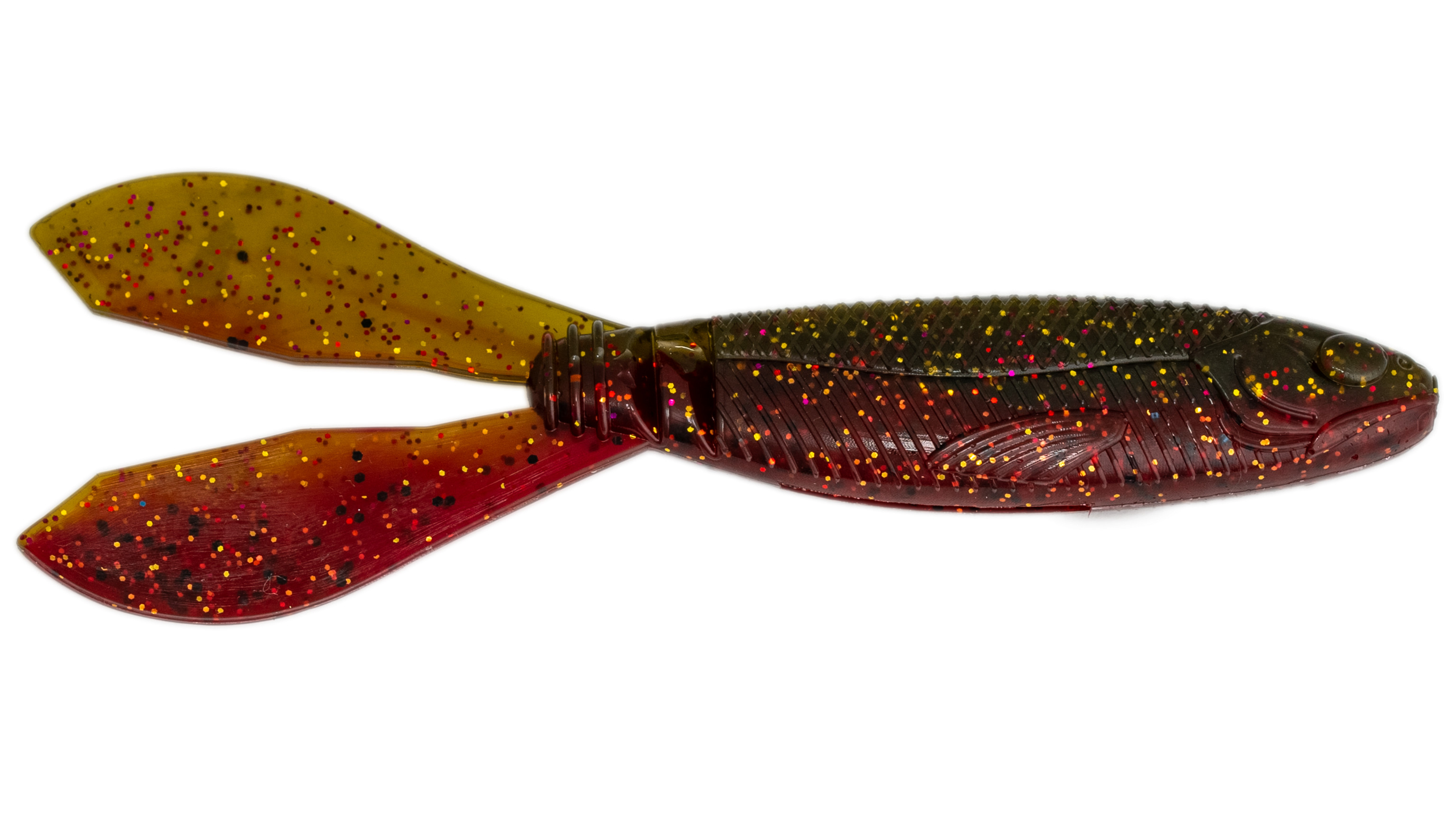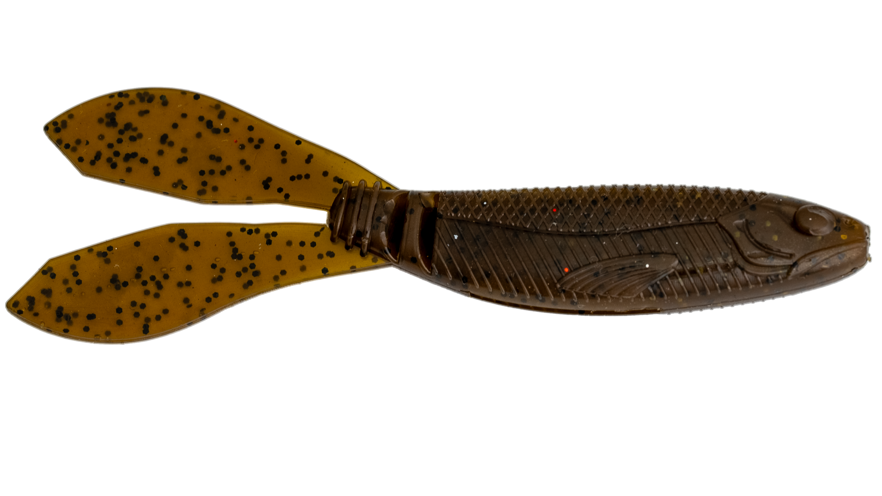 A soft bait designed to work as a vibrating jig trailer. The body has a slender, realistic bait fish profile with nice detail and smooth swim. The bait puts lots of action out of the tail on a slow or fast retrieve.