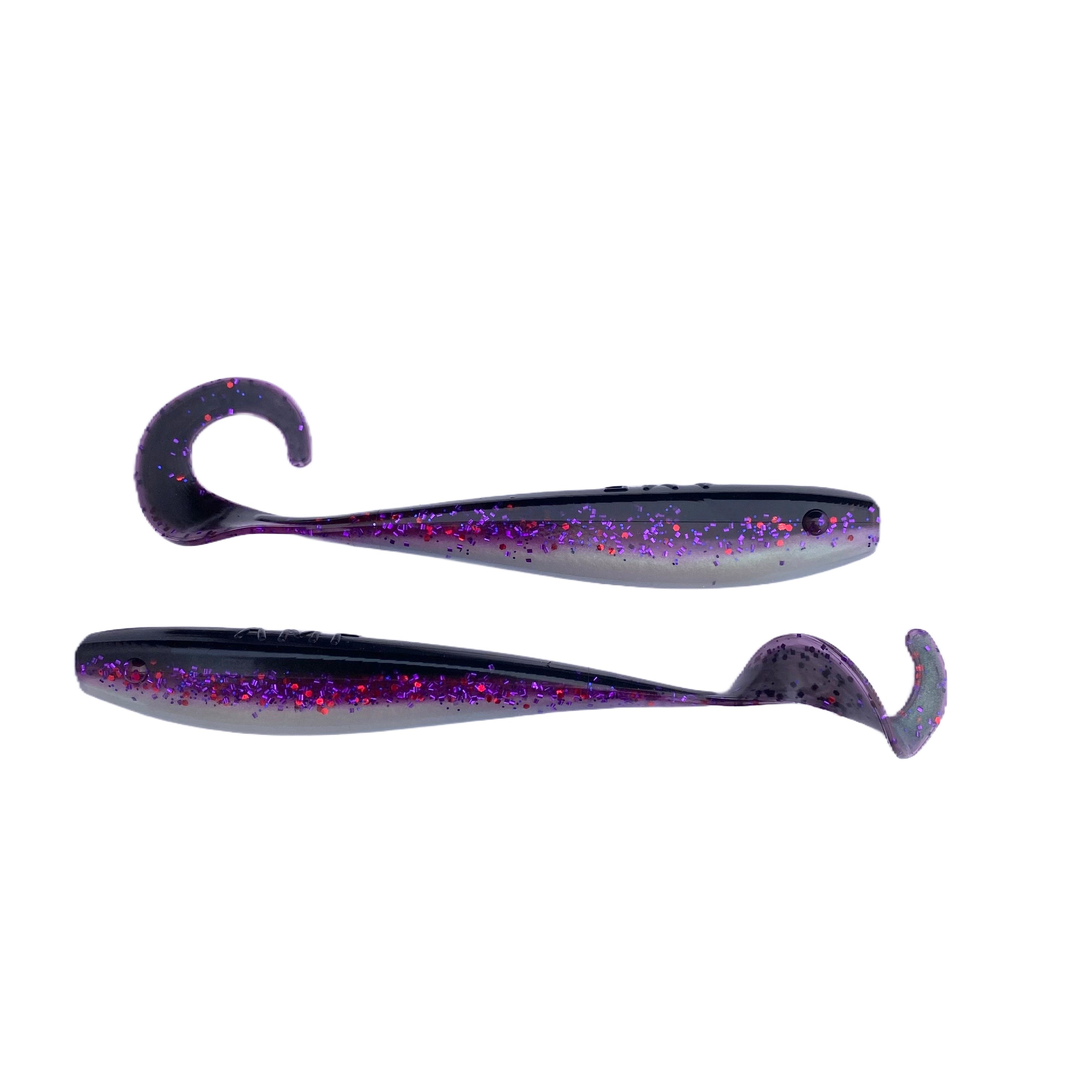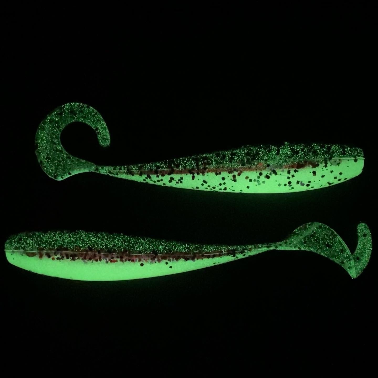 Black back, shiny deep purple lateral line and a green glowing belly with olive UV reflective powder, awesome natural pattern for all weather, all water conditions.